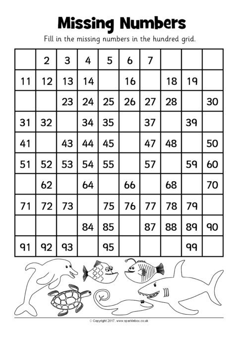 Hundred Grid Missing Number Worksheets (SB12242) - SparkleBox