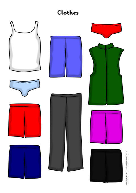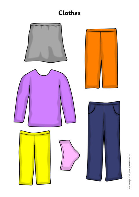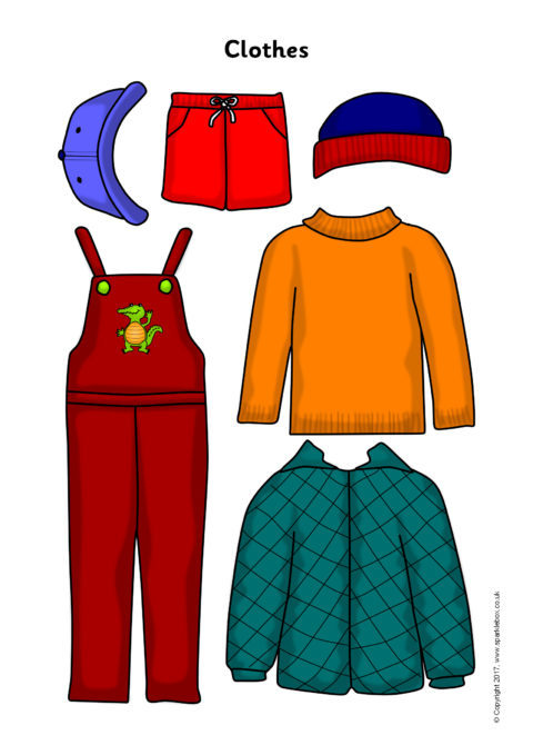 A huge set of cut-out clothes for boys and girls to 'dress' the children. Print out and laminate to make a reusable activity where children lay out the clothes on the children and try different clothing combinations. Includes clothes for different weathers and occasions.