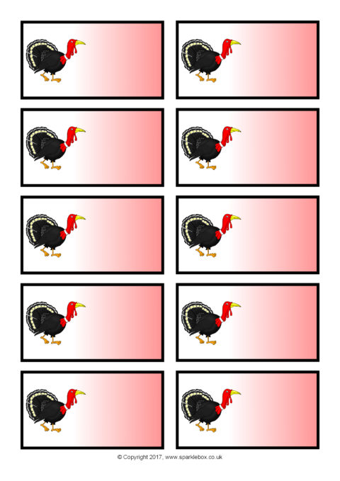 A set of editable peg labels (10 per page) featuring a cartoon turkey character. Ideal for use in your cloakroom area or for pupil drawers.