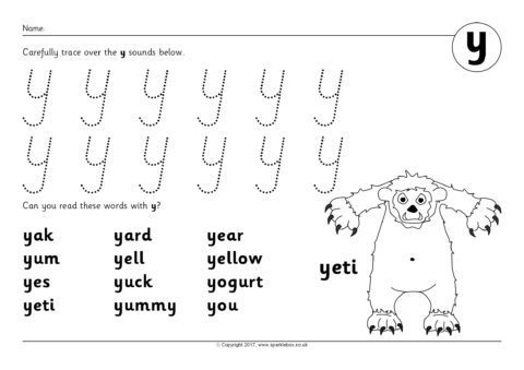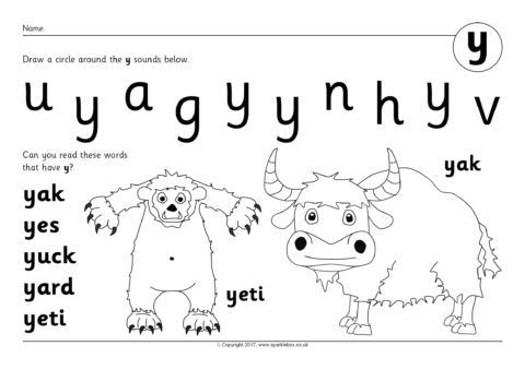 Phoneme Worksheets: y (SB12305) - SparkleBox