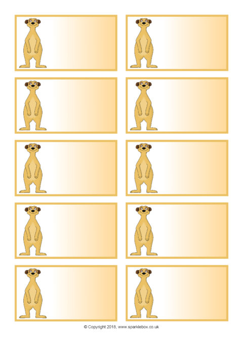 A set of editable peg labels (10 per page) featuring a cartoon meerkat character. Ideal for use in your cloakroom area or for pupil drawers.