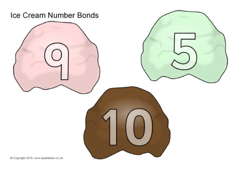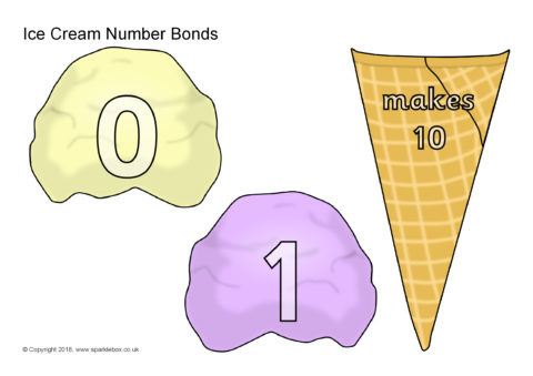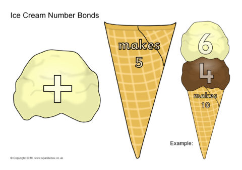 Create an activity where children make ice-cream scoop combinations with number bonds that make 5 or 10.