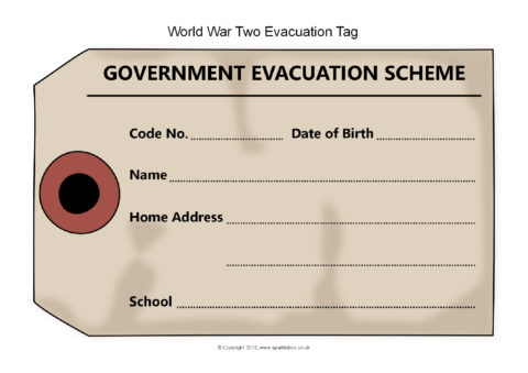 A set of colour and black and white authentic-looking World War Two evacuee name tags. Includes tags of various sizes for children to fill in themselves.