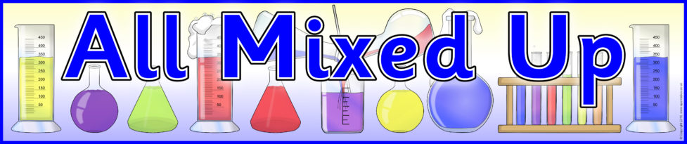 A banner that prints over 3 landscape pages for your classroom mixing chemicals display. Featuring colourful pictures of various chemical jars.