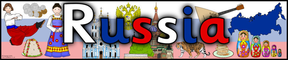 A classroom banner that prints over 3 landscape pages for your topic wall display about the country of Russia.