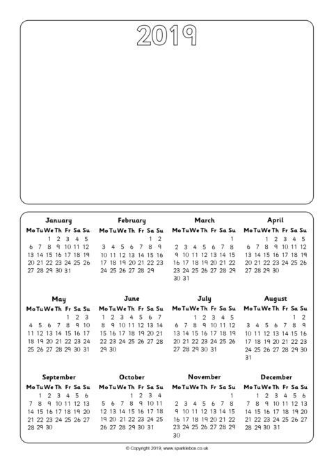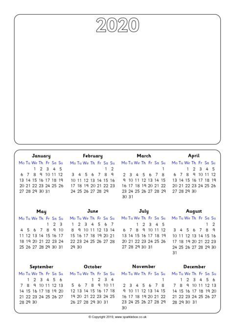 Printable 2020 year to view calendar templates with space for children to draw a picture above the calendar.