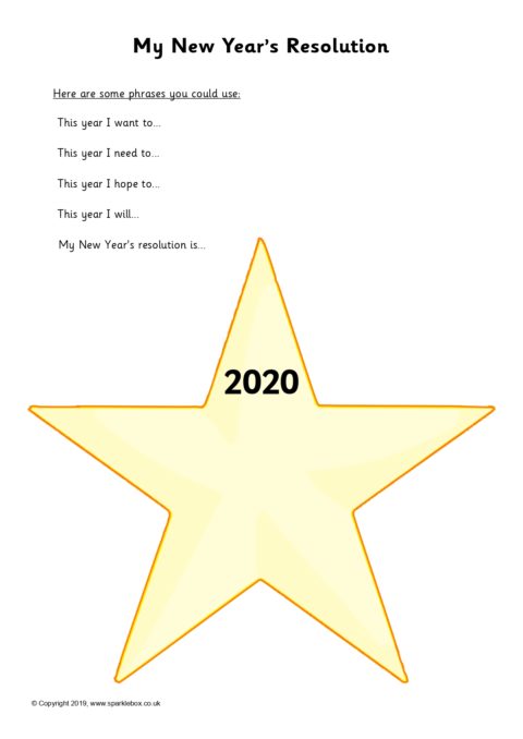 Get your pupils to write their new year's resolutions on these lovely stars to be put on the wall. With helpful phrases.