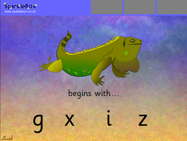 An interactive PowerPoint activity where children are presented with objects beginning with ‘i’ and they must identify the correct letter ‘i’.