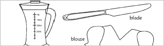 Printable visual aids showing initial consonant blends in a blender. Includes black and white version ideal as an assessment sheet.