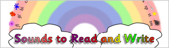 Colourful printable mats with initial blends presented in an arc above a rainbow, to accompany the activities in Progress In Learning 1 by Kim Morris.