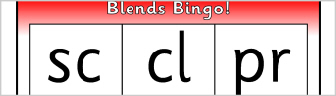 Printable bingo boards and picture cards where children match the pictures to the initial blend/consonant cluster.