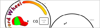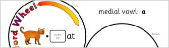 Printable word wheels making CVC words. Children first make the word to match the picture, then construct other CVC words by changing the initial consonant.