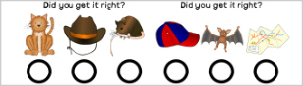 Create an activity where children find a CVC word on a fold-over card, mark a dot through the corresponding hole and check using the pictures beneath.