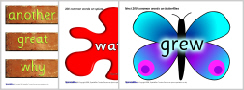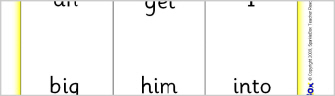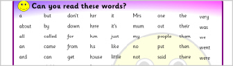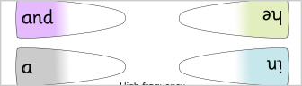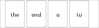 The 100 high-frequency words as specified in the DfES ‘Letters and Sounds’ publication presented on simple flash cards.