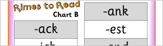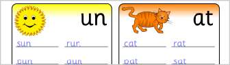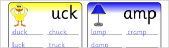 A set of printable cards featuring various rimes. Laminate the cards for use with dry-wipe pens where children write new words using the rime on their card.