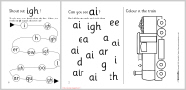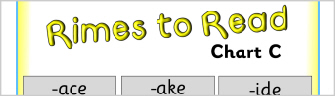 A printable desktop mat showing various rime chunks with pictures to accompany Progress In Learning 1 by Kim Morris.