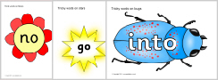 The next 200 medium-frequency words (as specified in the DfES ‘Letters and Sounds’ publication) presented on cards with brightly-coloured borders.