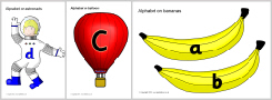 A set printable cards with alphabet sounds a-z and accompanying pictures cards for sound and picture matching games.