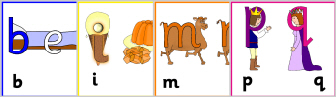 Simple A4-sized posters showing ‘p’ and ‘q’ the correct way round in a pictorial way. A useful visual reminder to display in your classroom.