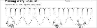 10 simple pencil control worksheets where children make straight lines, wavy lines, shapes and more.