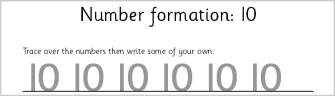 A set of 10 simple worksheets to help children practise their number formation. Numerals 0 up to 9.