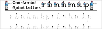 Simple visual aids featuring ‘Caterpillar Letters’, ‘Ladder Letters’, ‘One-Armed Robot Letters’ and ‘Zigzag Monster Letters’.