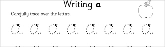 A set of basic worksheets where pupils trace and write lowercase letters from a-z.