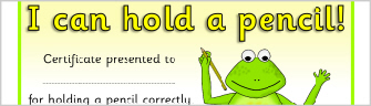 Certificates to present to pupils as awards for learning to hold their pencil correctly.