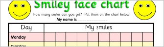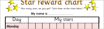 Two printable 5-day reward charts for children to stick on stars or draw smiley faces.