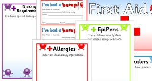 An editable set of resources for your medical information board. Includes posters for children with allergies, inhalers, EpiPens and medical conditions. Microsoft Word is required to edit the templates.