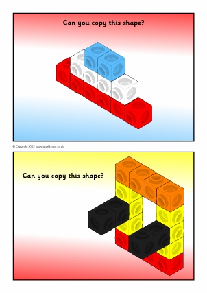 A set of prompt cards with shapes for children to copy with connecting cubes. Ideal for use with MultiLink® cubes.