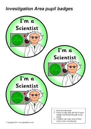 A set of printable badges for pupils to use when in your classroom investigation area.