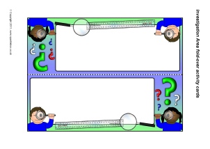 Editable fold-over cards to place in your classroom investigation area - great for all sorts of uses. Use them to specify activities for pupils to complete, list pupils/groups that can play in the area or remind children of important rules to adhere to.