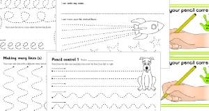 A printable banner for a classroom display showing children’s pencil control efforts and work.