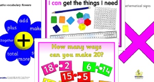 A set of posters for your classroom maths area posing simple questions to prompt children in their activities.