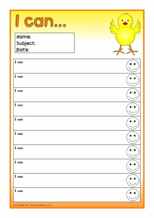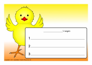 Editable target sheets (for Microsoft Word) with the text ‘I am learning to...’, ‘My next goal is...’ and ‘I can...’. Each sheet has space for 10 targets.