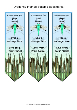 Editable bookmark templates (Microsoft Word) with a colourful dragonfly-themed design. Personalise with your students’ names and your own message.