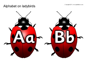A PDF document with 26 alphabet letters (upper and lowercase) with a ladybird pattern. These are great for printing and cutting out for use on displays.