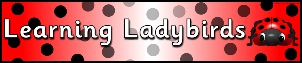 An editable banner template featuring cartoon ladybirds. Microsoft Publisher 2007 or higher required to view and edit.