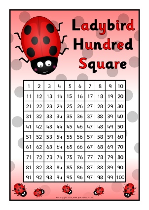 Print out and laminate this colourful ladybird-themed hundred square sheet to use in all sorts of classroom activities.