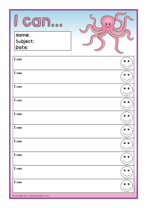 Editable target sheets (for Microsoft Word) with the text ‘I am learning to...’, ‘My next goal is...’ and ‘I can...’. Each sheet has space for 10 targets.