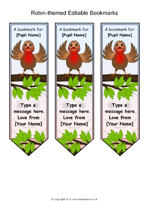 An editable bookmark template (Microsoft Word) with a robin-themed design. Personalise with your students’ names and your own message.