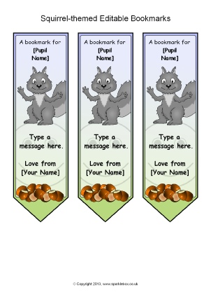 Squirrel-Themed Editable Bookmarks (SB9708)