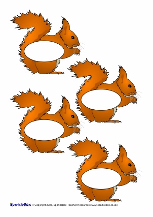 A template that allows you to add your pupil names to squirrels. Add the names, print out & laminate. You could make a display where children move their squirrel to a tree hole.