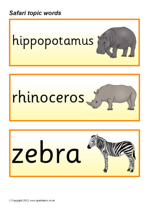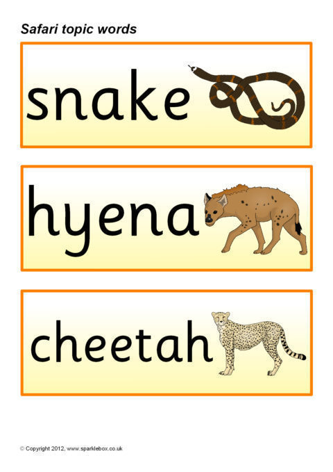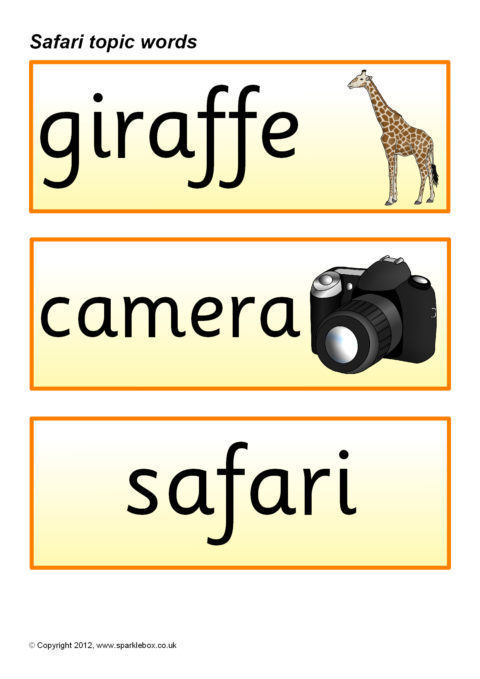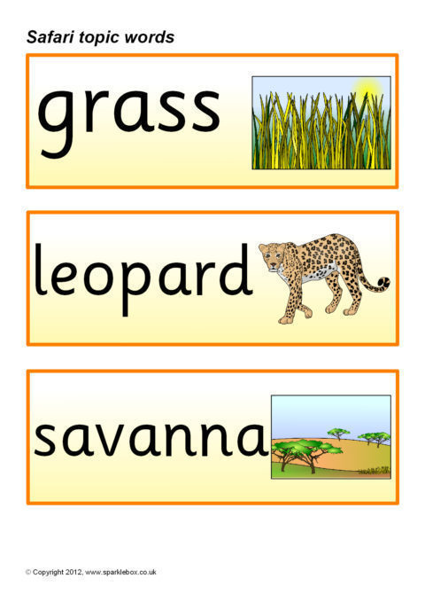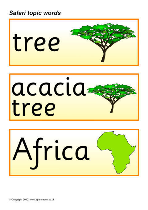 A set of printable word and picture cards linked to an African Safari. Great for classroom displays, word banks or laminating for other topic-related activities.