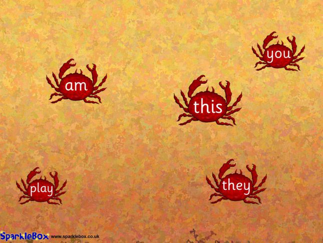 Watch as the crabs crawl across the sand with keywords on their backs. Your kids will really like reading the words when they appear, and watch out for a whole crowd of crabs at the end!