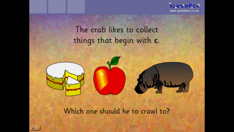 A fun interactive PowerPoint where children choose items beginning with ‘c’ for the crab to crawl to.