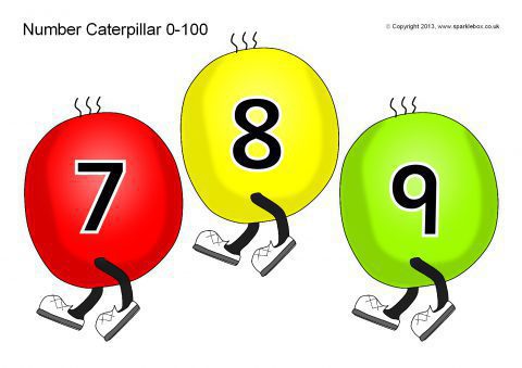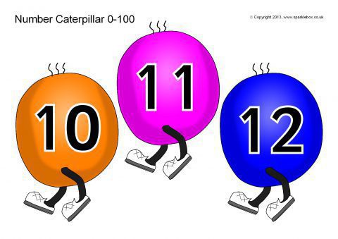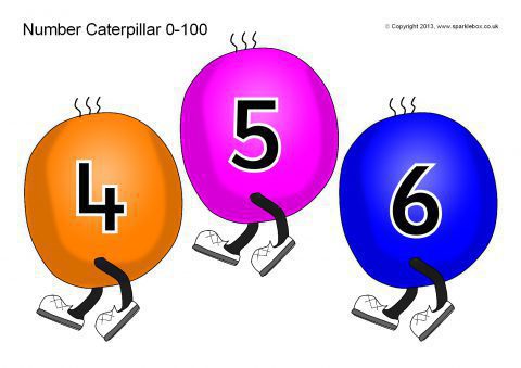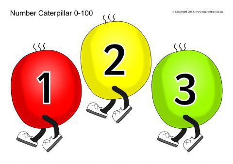 Create a caterpillar number line with the numbers 0 to 100 on brightly-coloured segments.