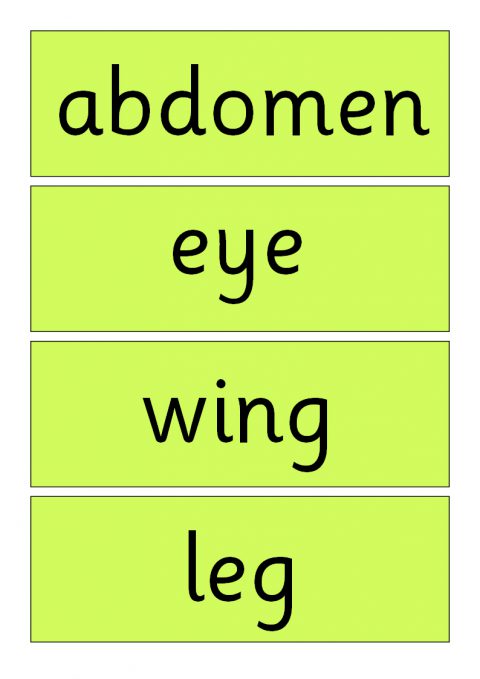 A PDF file with a cut and stick worksheet for labelling the parts of a fly, as well as large colour word cards and accompanying picture.