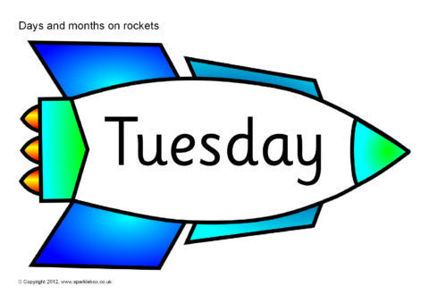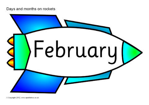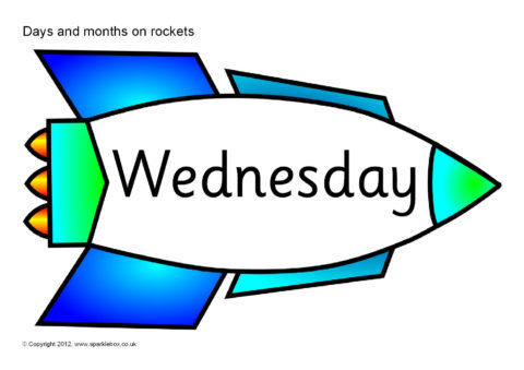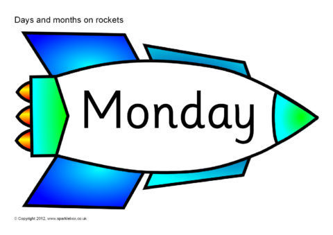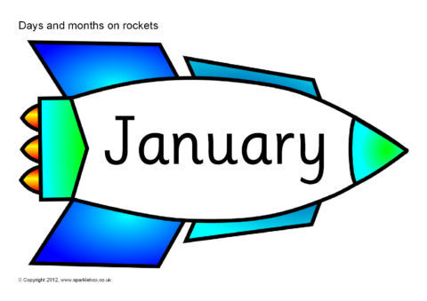 A set of rockets with the days of the week (Monday-Sunday) and the months of the year. Ideal for use in classroom displays.